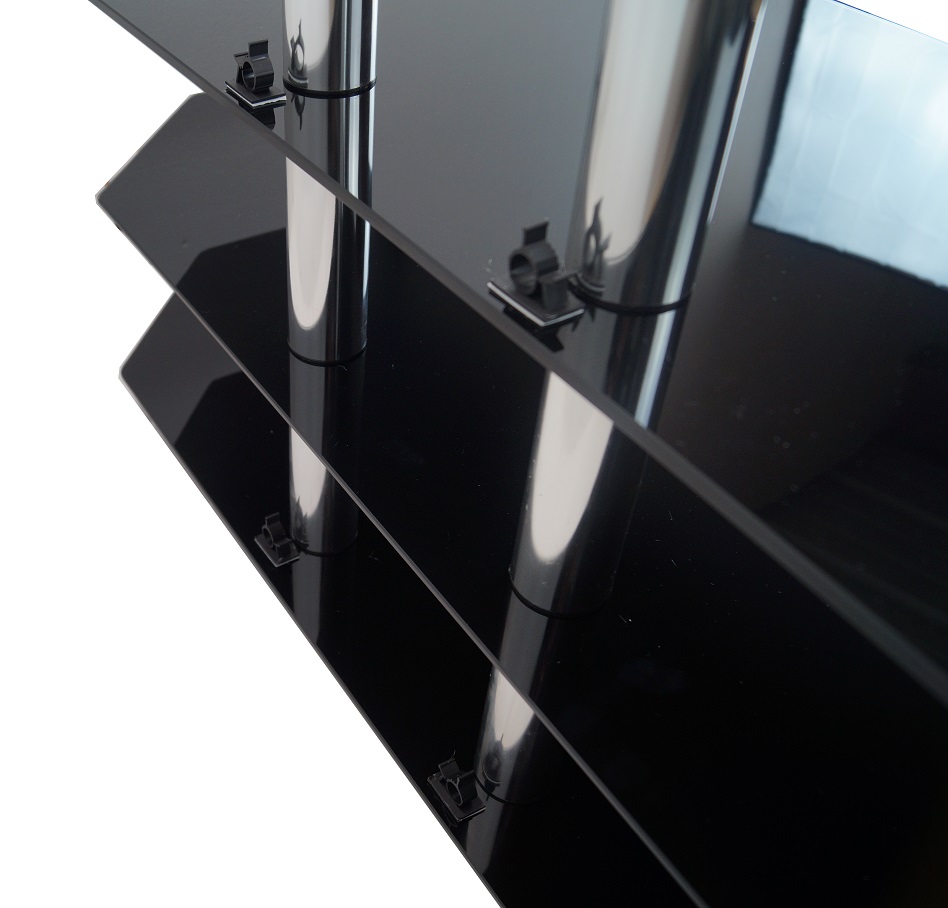 ·TV Stand with black glass and silver chrome upright legs (supplied exactly as pictured)