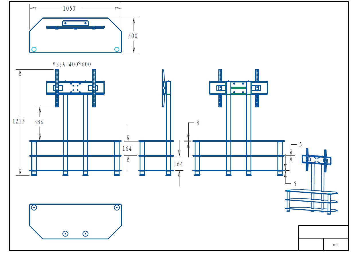 - Glass TV Stand Type: 8mm top / 6mm lower shelves