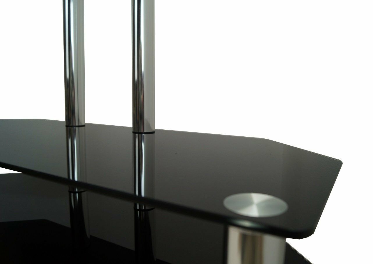 black glass and bright chrome legs makes it a perfect match for LCD, LED or Plasma screens up to 60″.