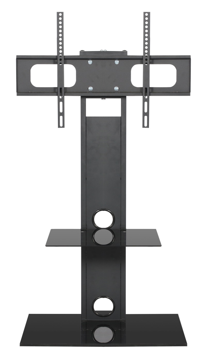 -Compatible with VESA: 100×100, 100×200, 300×200, 400×200, 400×400 and 600×400. Please check Your VESA Mounting Sizes, some older Panasonic screens have a VESA of 660mm x 440mm which this stand is not compatible. A stylish glass tv stand, with black glass is suitable for LCD, LED or Plasma screens up to 50″. Mount the TV on the cantilever TV stand and Hide all those messy cables, with integrated cable management.