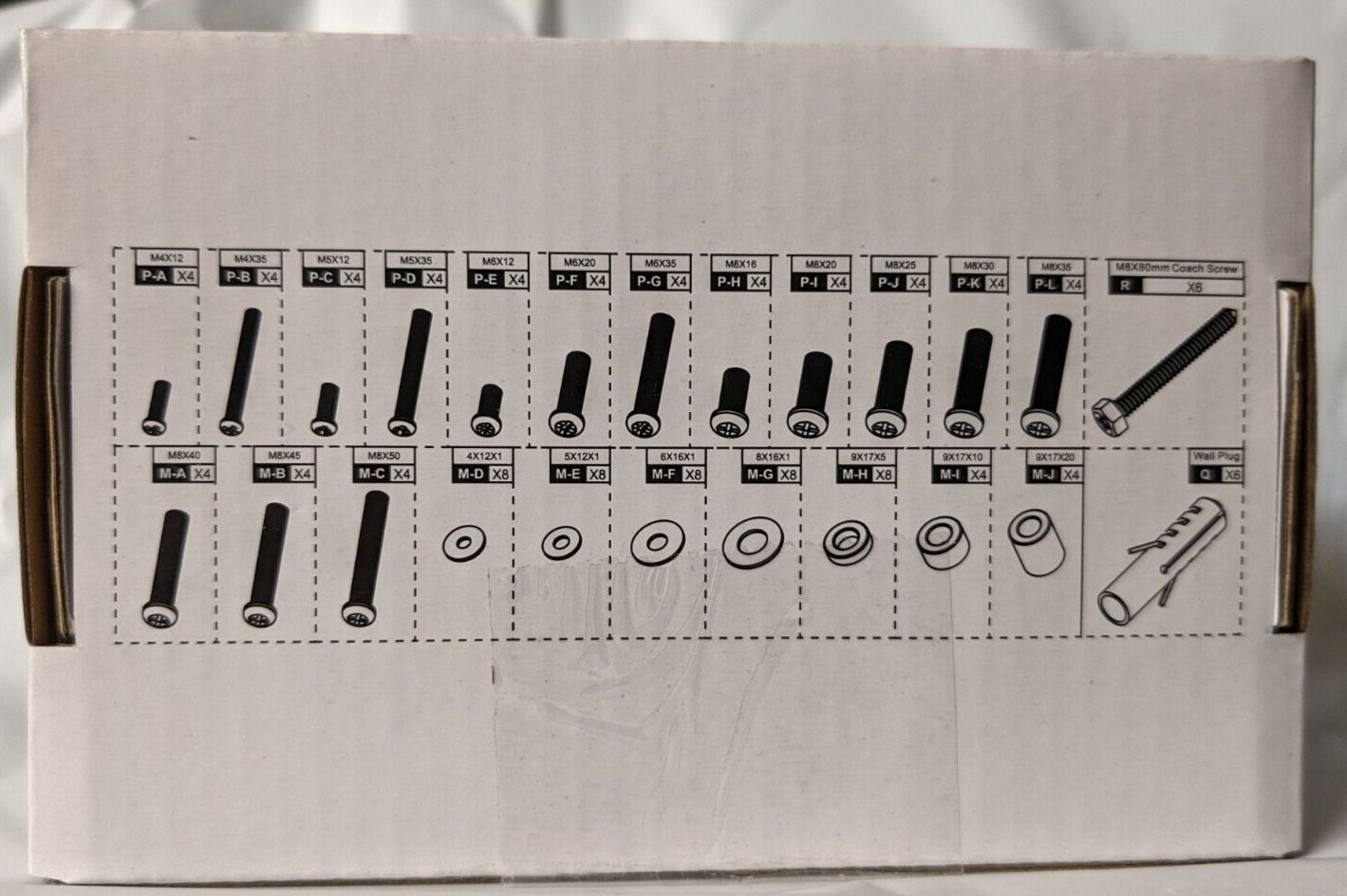 Complete list of fixings included in the package: