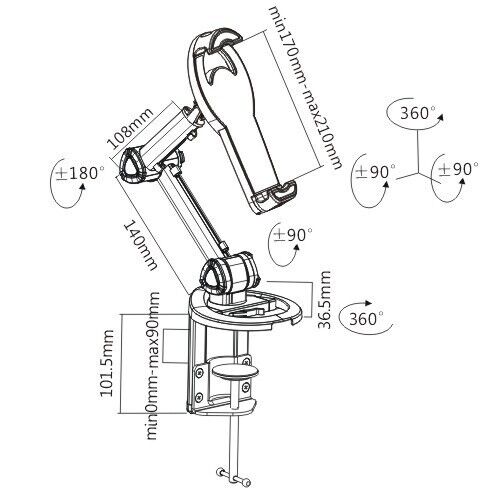 Adjustable Holder Width: 170~210mm (6.7″~8.3″)